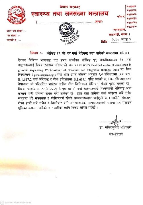 थप समाचार Detailsइलाम ४ जेठः नेपालमा थप दुई नयाँ भेरियन्टको कोरोना भाइरसको संक्रमण फेला परेको छ। स्वास्थ्य तथा जनसंख्या मन्त्रालयका अनुसार ३५...