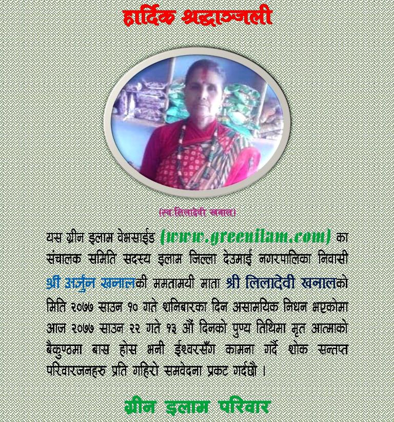 थप समाचार Detailsइलाम, ४ कार्तिकः इलाम नगरपालिका वडा नं. ९ घर भई हाल बेलायतमा बसोबास गर्दै आएकी इलामे चेली अन्जना गुरुङले इलाम...